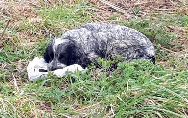 Paul Skinner, a cyclist, was driving around one day when he saw an abandoned dog in a ditch. He stopped for a second to see why the dog wasn’t moving when he noticed that she was licking and sniffing a plastic bag. He approached the dog to see what’s going on.