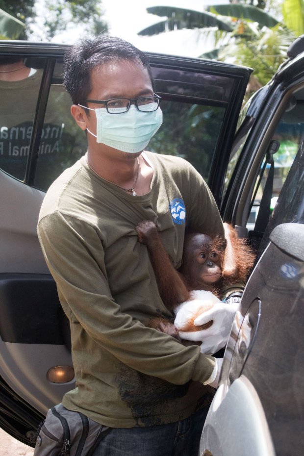 “This is the sad reality, the reality of what happened to orangutans in Indonesia. It’s possible that little Joss has seen her mother being brutally murdered and then she was sold as a pet. If you just take a look at Joss’s eyes, you’ll see the nightmare she’s gone through,” explains Alan.