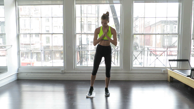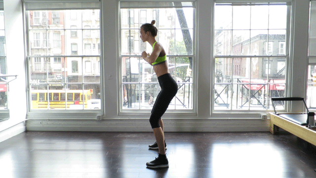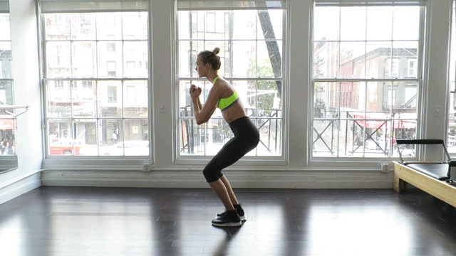 Don’t forget to squat. Do 10 squats to warm up, and then do 20 rep. with bent knee sliding backwards.