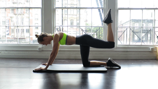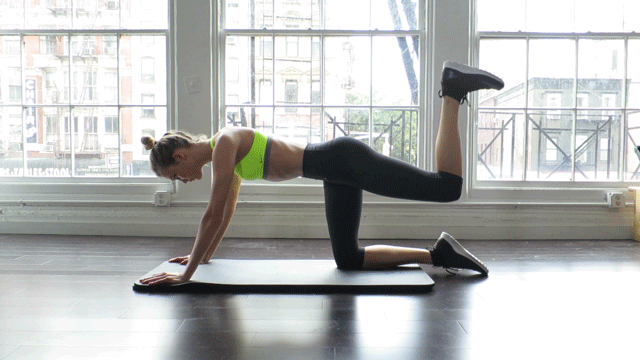 Get down on all fours and do these 5 exercises. Do 10 to 20 repetitions.