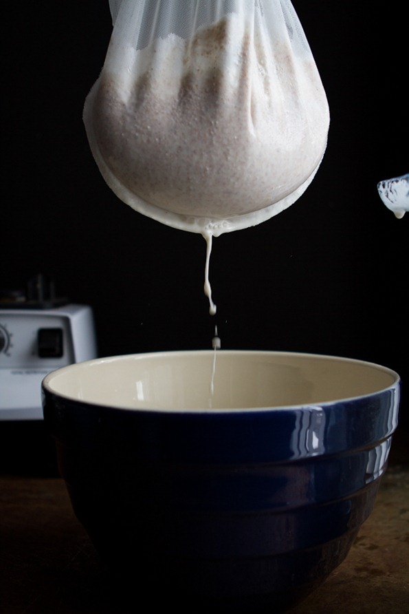 Once you’re done blending, it’s time to strain your almond milk to get rid of the almond pulp. You can use a sieve or a bag strainer.Homemade-Healthy-Almond-Milk-4