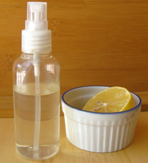 Combine 2 cups water and chopped orange/lemon in a small pot and boil over medium high heat until it’s reduced by half. Strain the liquid into a measuring cup. Allow the mixture to cool. Mix the alcohol and essential oils in a small bowl, and then add to the cup of citrus juice. Pour the liquid into a spray bottle.