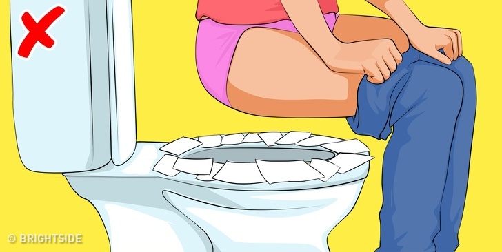 This might be the worst decision ever. A lot of people forget to close the toilet door after using it and when they flush, the bacteria gets spread all over the toilet, including toilet paper. The paper absorbs moisture and moisture is the best breeding ground for bacteria. Unless you carry your own toilet paper, don’t place the paper all over the seat.