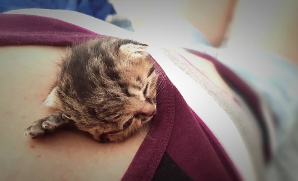 The little kitty has already a Facebook page where people can see her photos, and be updated about her health and her grow up, hoping all together that she would grow into a healthy cat.