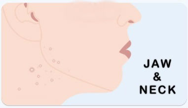 Acne on the jaw and neck can be a sign of excessive sugar intake or overactive adrenal glands.