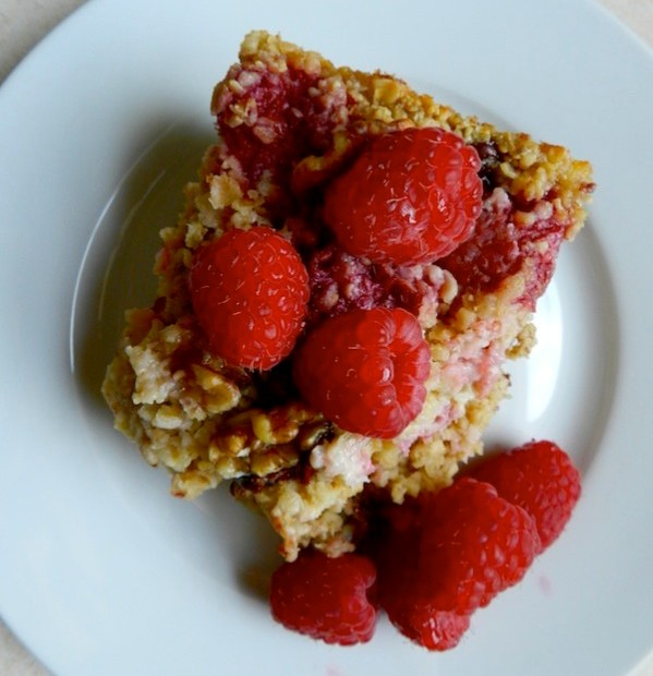 Preheat oven to 375 degrees. Spray a baking dish with non-stick spray. Combine oats, cinnamon, salt, sugar, baking powder, half the walnuts, half the strawberries and half the chocolate in a large bowl. In another small bowl, whisk together the egg, milk, butter and vanilla extract. Put the dry ingredients to the baking dish. Top with remaining fruit, nuts, and chocolate. Pour the egg mixture into baking dish over the dry ingredients. Bake for 35 minutes.