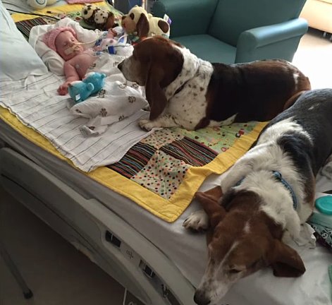 These loyal family dogs are refusing to leave the side of the dying baby girl who had suffered a stroke. Nora Hall was only 5 months old when she suffered a major stroke that caused brain damage and left her in medically induced coma.