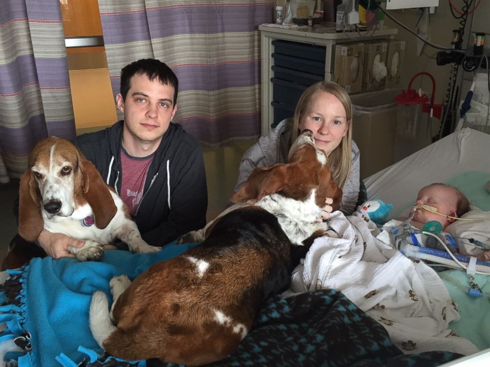 “My daughter had a stroke on April 6. We have been at Children’s Hospital in Minneapolis since then. She is not going to survive. They allowed us to have our bassets here in the last couple of days because they are so attached to her,” her mother Mary Hall wrote on Facebook.