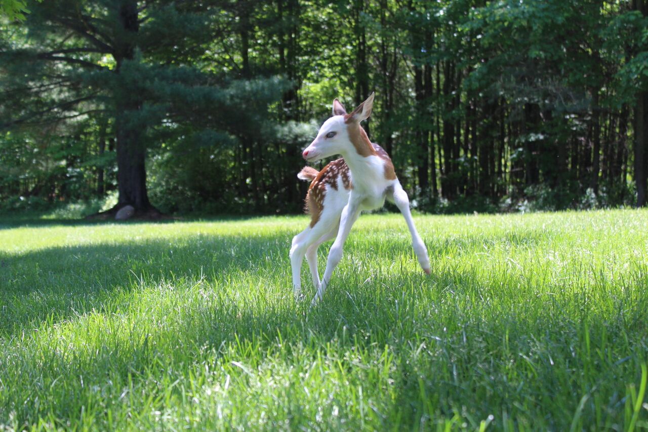“Normally they have a black nose. It’s actually a detriment in the wild because if they don’t have shade, their nose is very sensitive to the sun and can get sun burn,” explains Hillary Powell, owner of Deer Tracks Junction.
