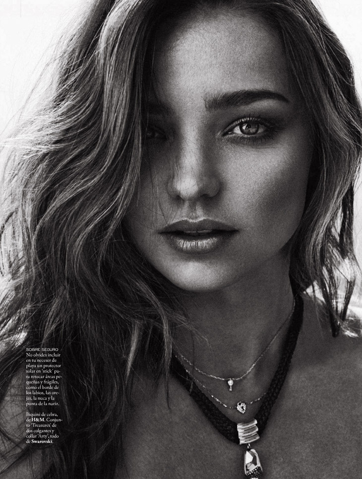The Australian supermodel recently was part of the never-ending string of fashion editorials, campaigns and covers, and here is another photo shoot to add to the list. Kerr looks natural in the moody summer element. For the new edition of Spanish Elle, Miranda wears miniature swimwear and jewelry that highlight her provocative appearance. Photography by Xavi Gordo, styled by Inmaculada Jimenes, hair and makeup by Vicky Marcos.