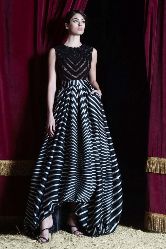 Murad experimented with the hypnotizing effect of the black & white stripes, played with transparency and use the everlasting beauty of the simple cut. The elegant dresses, fashionable jumpsuits, pencil skirts and straight cut pants tickles women’s curiosity. Besides black and white, the collection includes colors such as sophisticated pink, blue and turquoise shades.