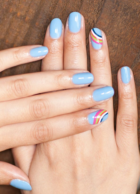 13. The rainbow nail design is a great way to brighten up a one-color manicure.