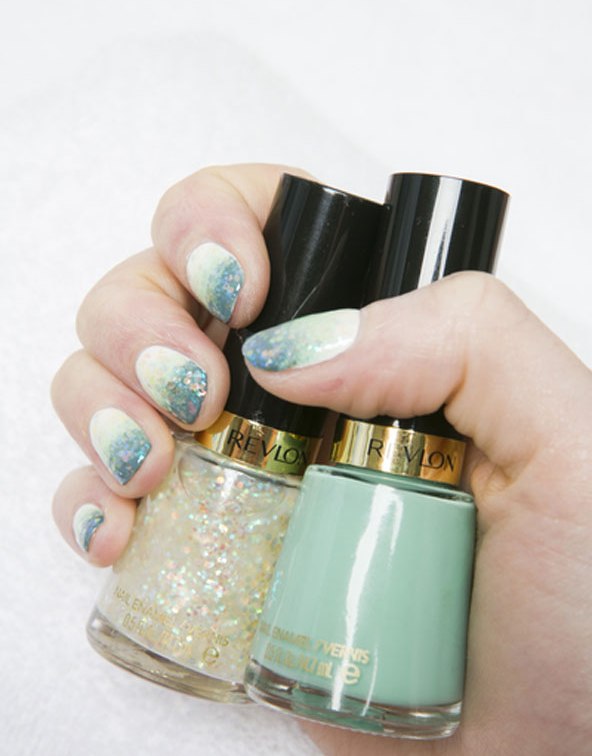 3. Create a two-color look, gold on to the tips of your blue nails for real sparkle.
