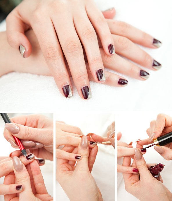 6. Create a soulful and sensual nails with deep purple base and gold tip.