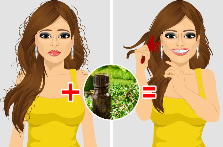 – Thyme oil restores hair and makes it look healthy.