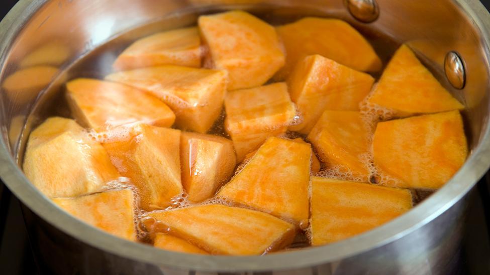 Sweet potatoes are one of the most nutritive vegetables ever. They’re packed with vitamin A, high in carotenoids, antioxidants and anti-aging properties. Another great thing about this vegetable is that it can prevent many types of cancer. Sweet potatoes are extremely rich in B vitamins, B1 or thiamin, B2 and B3 or riboflavin and niacin, B5 and B6. B vitamins are the vitamins that form red blood cells and help the body to process food into energy. One new research shows that the water left from boiling sweet potatoes can help digestion and weight loss.