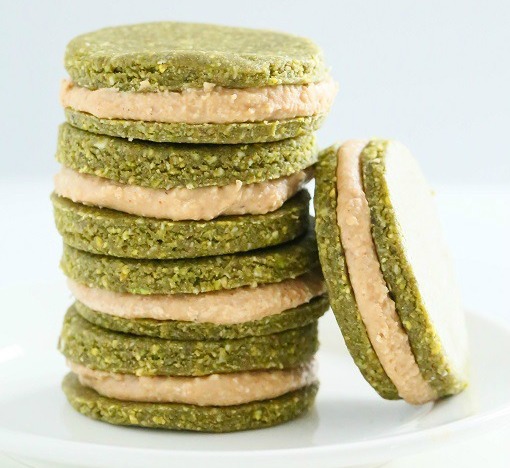 Put the filling ingredients in your food processor and pulse until the ingredients are smooth. Take the cookies out of the fridge and put 1-2 tbsp. of the filling and place another cookie on top so you get a cookie sandwich.