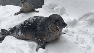 Nora, the polar bear was playing in the white, sea otters were enjoying the snow, and harbor seals were swimming in the icy pool.