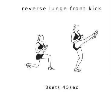 Take a step back with your right arm and lunge. As you start coming up, kick your right leg up. Repeat with the other leg.
