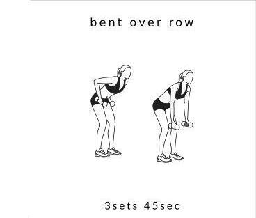 Bend your torso. Squeeze your shoulder blades and pull the dumbbells towards your waist line.