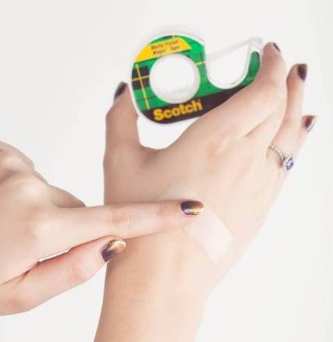 The magic trick here is to use a scotch tape. Take an inch-long piece of Scotch tape and press it to your hand to make it not that sticky.