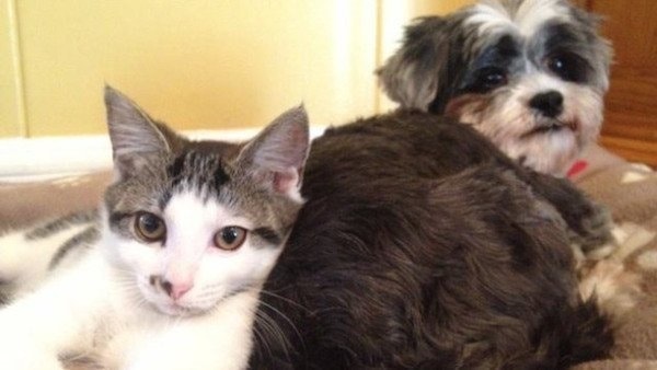 Smith thinks that the dog was out exploring when she ran into the kitten, who wouldn’t survive out there all alone.