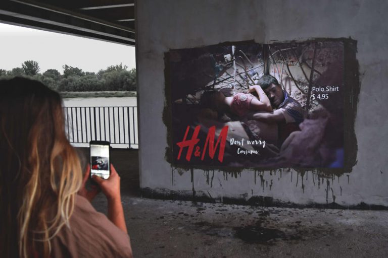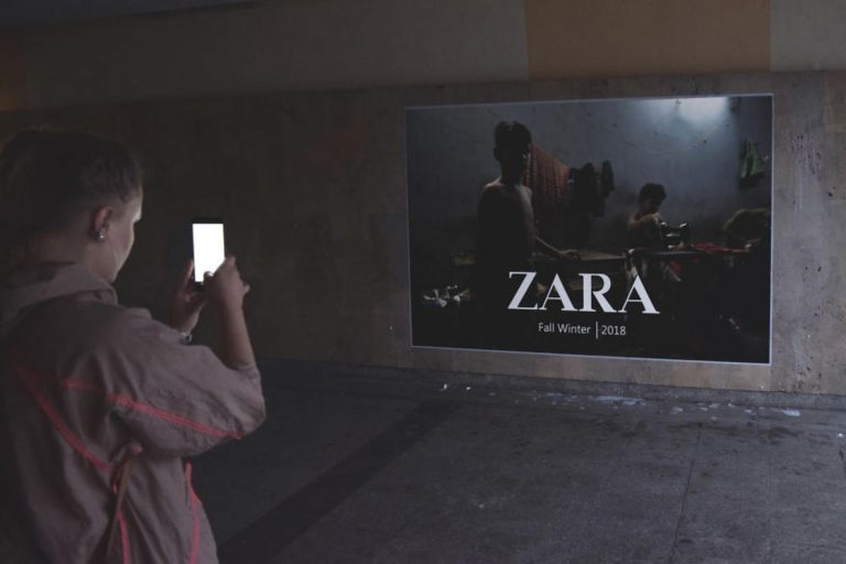 Dobrowolski has created incredible images that grasp the cold reality, bad working conditions, child exploitation and incredibly low paychecks. His art shows the misery of the fashion industry and fashion brands we all know and like to wear. You can find his works of art all over the streets of Warsaw.