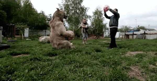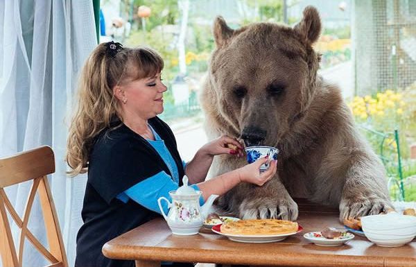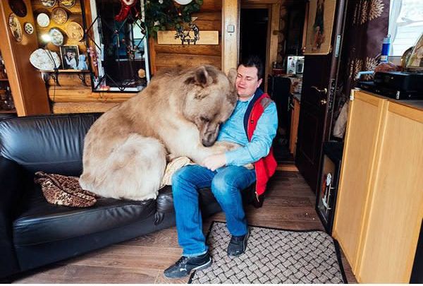 The couple adopted Stepan when he was only 3-months old. Stepan was found abandoned in a forest, in a bad health condition. The couple decided to adopt the orphaned bear and nurture him to health. Stepan is now 23-year old loving goofball.
