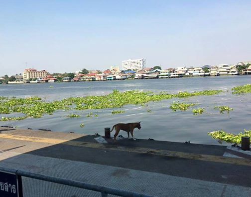 This dog was separated from her family the worst way ever. The family reportedly took a boat trip to go on a picnic when the dog fell off the boat into the Chao Phraya river near Bangkok. Luckily, the dog swam to the shore and waited for her family to come back.