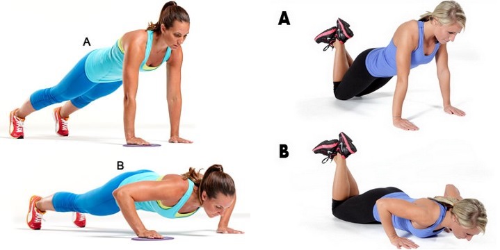 You can perform standard push-ups or knee push-ups. Do 20 reps.