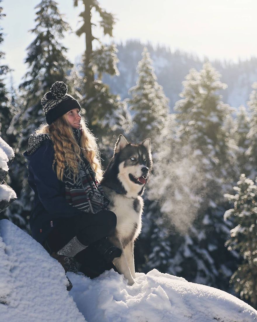 The nickname Goldilocks and the Wolf was given to us by my Mother. With my long blonde hair and Kyro’s Agouti coloring – the name just stuck. It became my Instagram name and the name of my photography business. Through the lens of my camera I tried to capture the ‘Fairy-tale’ moments we were seeing in our journeys together. Fairy-tales certainly are better when you have a Knight in shining armor. Or, in my case, a blue-eyed hero covered in fur. Together we have learned to stop and enjoy even the most simple of moments. And we both certainly appreciate the moments that absolutely take your breath away. I have caught Kyro so many times just sitting and watching the world around him. With Kyro by my side I’ve learned to brave and try things I would have never considered before. For example, waking up at 3AM to hike a mountain just to watch the sun crest over the mountains.