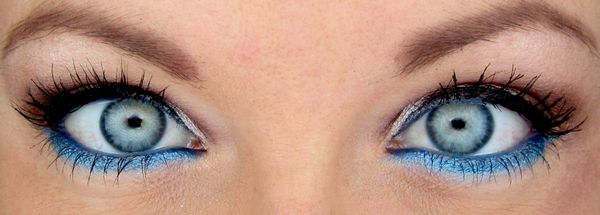 Applying a blue eye shadow or blue liner on the lower lash line will make your eyes look brighter and bigger. Don’t be afraid to use the blue!