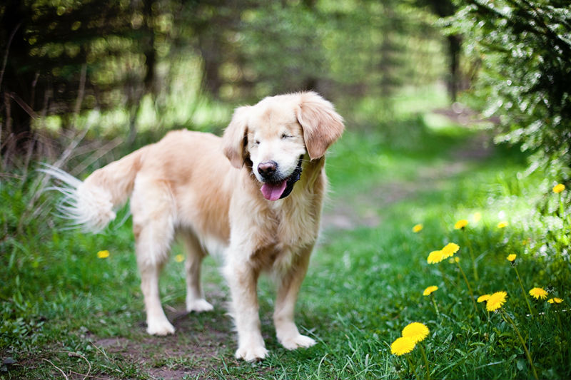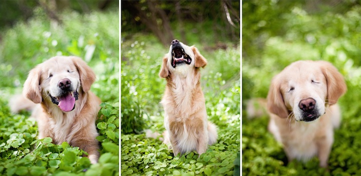 The golden retriever was saved from a dog farm by Joan George, his owner, when he was 1 year old. Smiley was suffering from infections and that’s why Joan had to take Smiley to the vet to get his eyes sewed up.