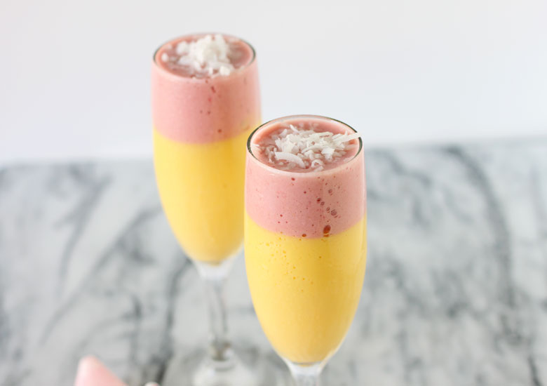 This smoothie is a beautiful presentation of two layers of color. It looks and taste wonderful!