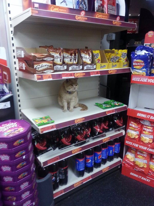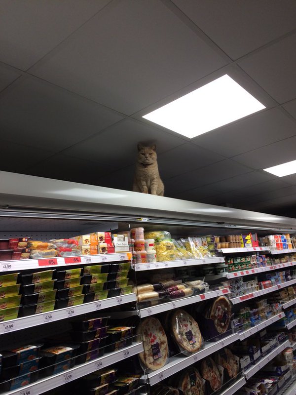This cat has been surprising shoppers in the same supermarket for almost one year. He has been regularly appearing on the shelves besides the many attempts by staff to kick him out.