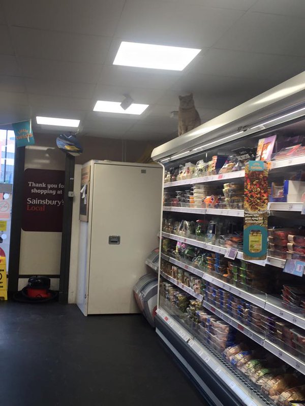 The mysterious cat has first been spotted in November, last year in Sainsbury supermarket and the store has become his favorite place ever since then.