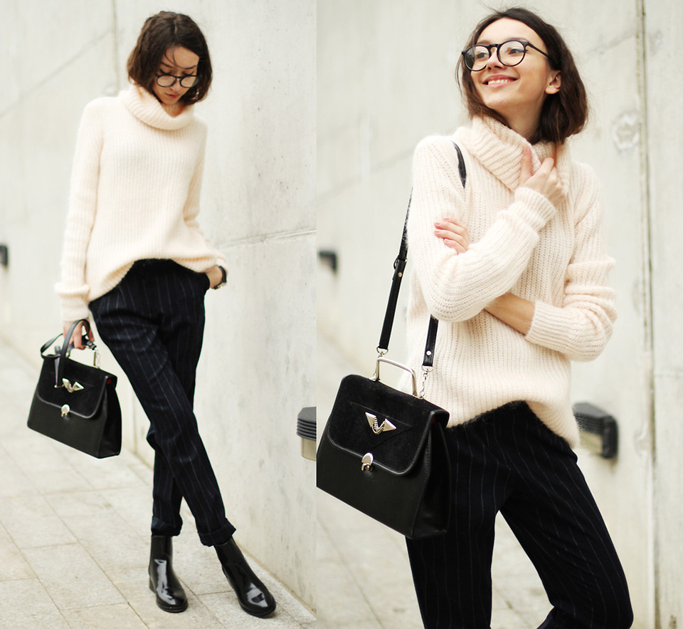 - One of the safest ways to try this trend is to combine them in a monochromatic color scheme. If you choose to make it all black, we advise you to wear it with a nice printed scarf.