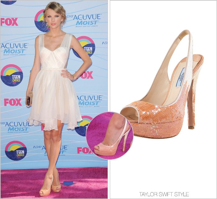 Known as the girl with an amazing fashion sense, Taylor Swift is becoming a serious threat for trendsetters and Hollywood divas. We’re really blown away by her couture gowns and eye-catching accessories on the red carpet but we really LOVE is her amazing shoe collection.