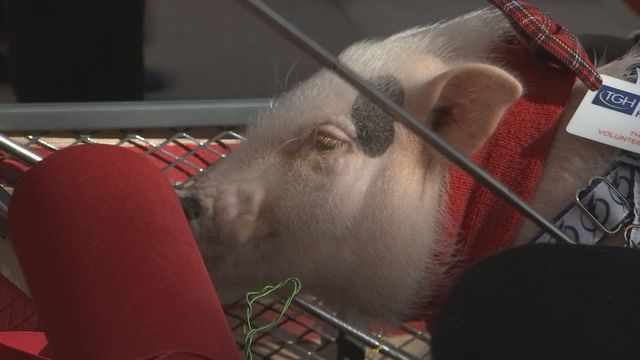 Some patients at TGH have special visits by therapy pigs called Thunder and Bolt.