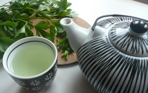 Boil 1 l water. Add 5 tbsp. chopped parsley. Leave the tea to cool down for 20 minutes and then drink your tea.