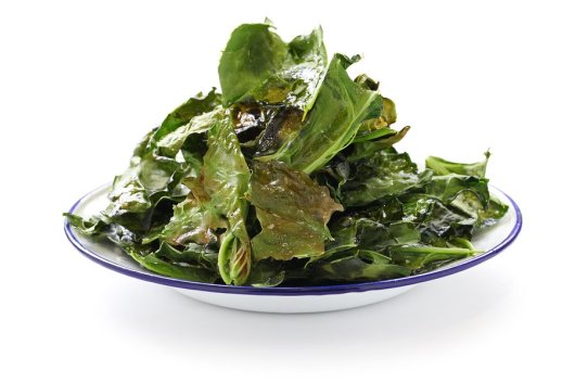 Remove the thick stems of Kale leaves and tear them into eatable pieces. Toss with Olive oil and bake them in a preheated oven for 10 mins. Ta-da baked Kale chips ready!
