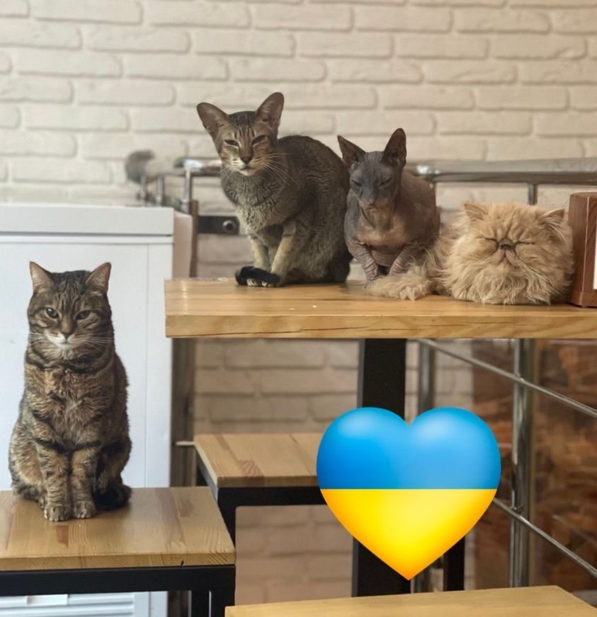 “Our cats have been living in [the] cat café since the age of 4 months. They are like family. We realized that we would never leave our country, that this was the only place where we could see ourselves in the future. We currently have fewer regular visitors, but some people have come from other cities and need hot food and positive emotions. There are three large rooms in our café, two of which are located in the basement, so in case of an air raid warning, there is a safe shelter for our guests and cats,” says Oliinyk.