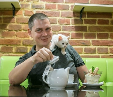 Cat Cafe Lviv has been working for 6 years, and it has been a loving home for 20 cats. The owner Serhii Oliinyk didn’t want to abandon his café and his cats, so he decided to keep the doors open, even when the city was under attack.