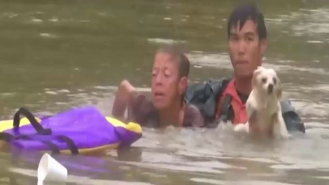 However, only one rescue attracted worldwide attention. A brave man saved a woman and her dog from drowning from a car that was quickly sinking into the muddy flood water. He managed to break the glass on the car and pulled the woman out, when she started yelling that there is a dog down there, begging to save him too. The water has swallowed the car, but that doesn’t stop this man to go under the water and find the woman’s dog. Luckily, the tiny dog finds its way from the muddy waters into the man’s arms.
