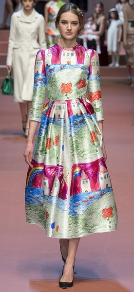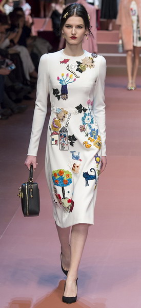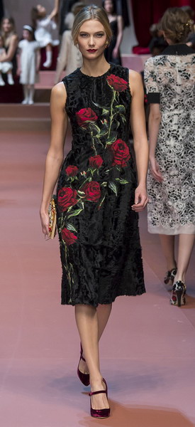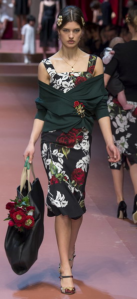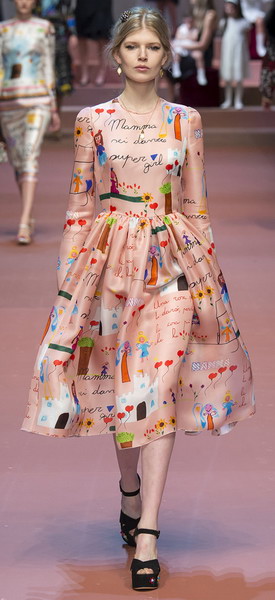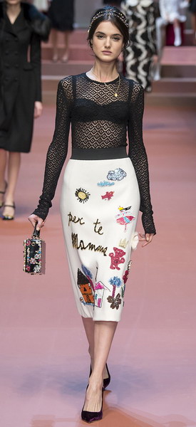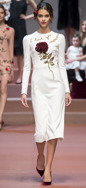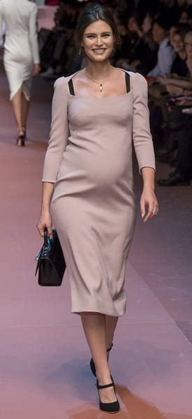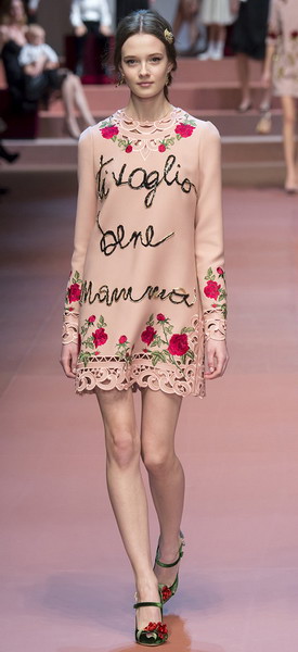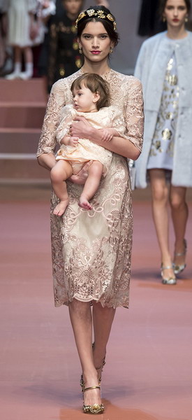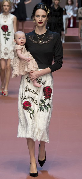 Before the runaway show started, 11 mothers hit the stage with their kids. Pregnant Bianca Balti, Dolce and Gabbana’s muse, received big applause when she walked the runway in a soft, pink creation.
