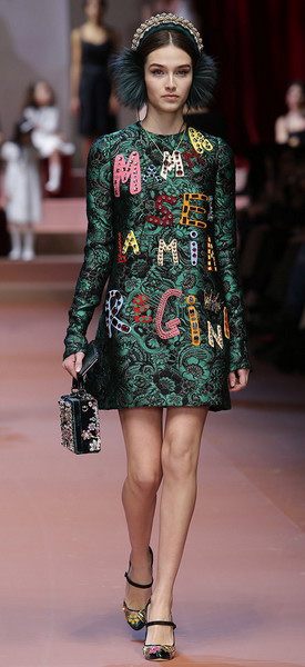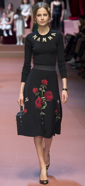 Every single detail in the fashion show celebrated mothers. Dolce and Gabbana translated Edoardo Bennato’s hit song “Viva la Mamma” on 14 different languages and included it in the fashion show.