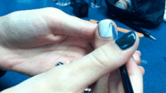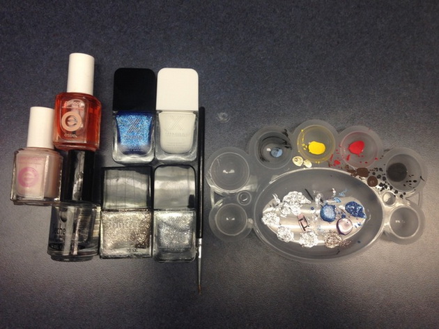 All you’re going to need to create the perfect snowy nails is white and blue nail polish, lots of glitter and a thin brush that will help you create unique nail art.