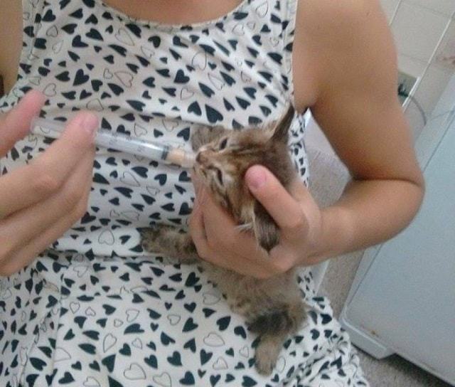 By the time was passing, the kitty began to recover. He even got a name- Davi. Now he lives with the other Aline’s cats at her home. They are truly best friends!